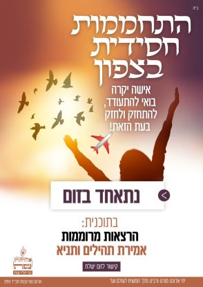 קבלת.פני משיח: המשימה והשליחות שלנו. היום, מאת הרב: יוסי דניאל. זום 75, יום שני  כו' חשון שעה 21:00. מתחזקות ומחזקות לגאולה, התחממות חסידית בצפון, ארגון נשי ובנות חב"ד צפת . לקישור לזום