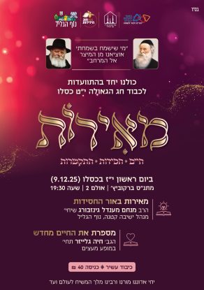 נשי חב"ד נוף הגליל מזמינות להתוועדות לכבוד י"ט כסלו. בתוכנית: "מאירות באור החסידות" עם הרב מנחם מענדל גינזבורג, "מספרת את החיים מחדש" מופע מעצים עם הגברת חיה גלייזר. לכל הפרטים