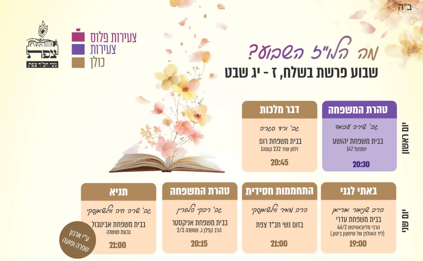 נשי חב"ד צפת: לו"ז פרשת בשלח