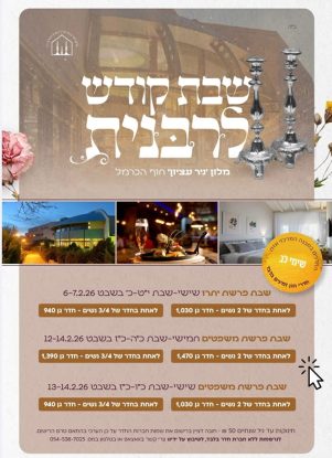 הרישום לשבתות קודש לרבנית בעיצומו, שימו לב כי החדרים במבנה המרכזי בשתי השבתות - אזלו וניתן להזמין כעת חדרי גן. לרשימת המרצים ולרישום