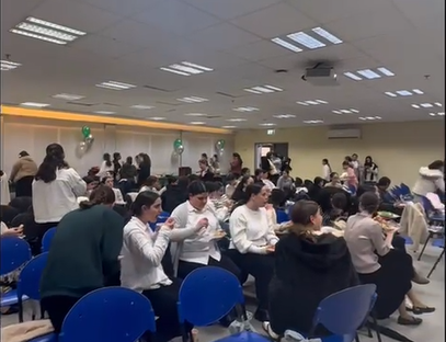 בבית חב"ד פלנדר בצרפת נערכה חגיגת ט"ו בשבט מיוחדת, עם 250 איש, בנוכחות הרב מנדל אזימוב והרב בנימין מרגי. צילום: מרדכי לובעצקי. לתמונות