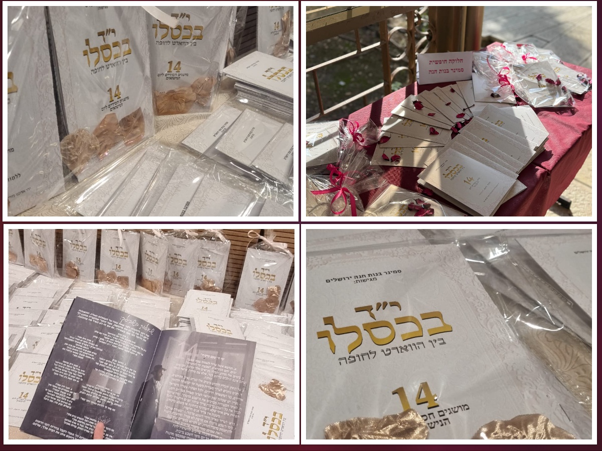 יוזמה מבורכת של סמינר בנות חנה ירושלים: הבנות הכינו חוברת מושקעת לכבוד י"ד כסלו על הלכות חתונה ומבט של הרבי והרבנית בנושא. החוברות חולקו במכללה ירושלים בית וגן ובכנס 'מהרה ישמע' של אחות התמימים לבנות התיכון והסמינר. לתמונות