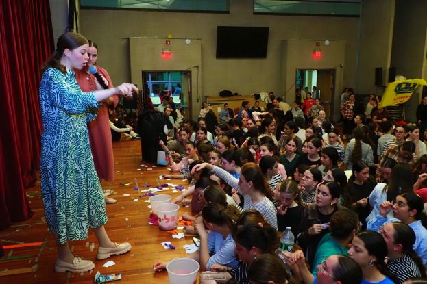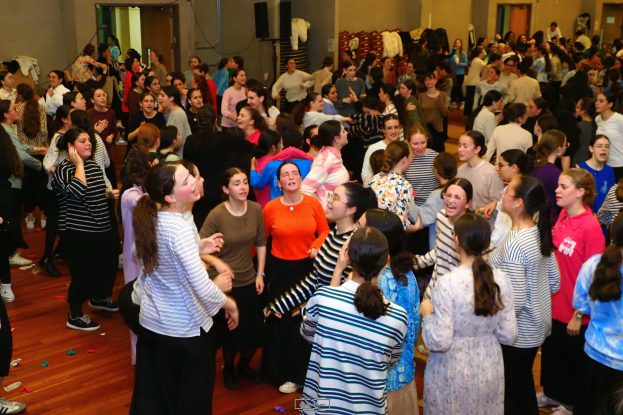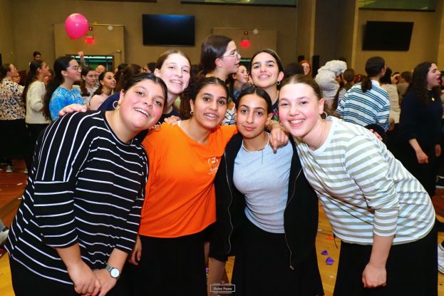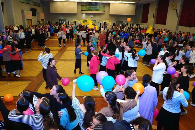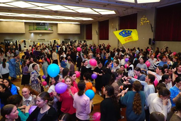 אורחות המלך בנות קבוצת אחו"תשרי השתתפו בהרקדה סוחפת - שמחת בית השואבה יחודית ומקפיצה , שנערכה במוצאי שבת סוכות באולמי בית רבקה בשכונת קראון הייטס. צלמת אתר נשי ובנות חב"ד שיינא פרומא גנזמן מגישה גלרית תמונות נרחבת