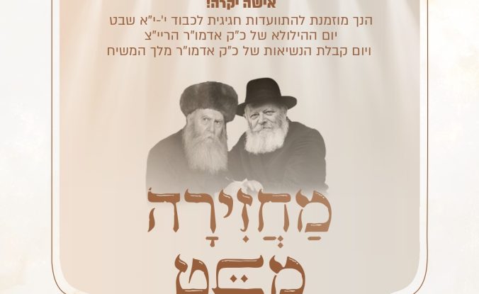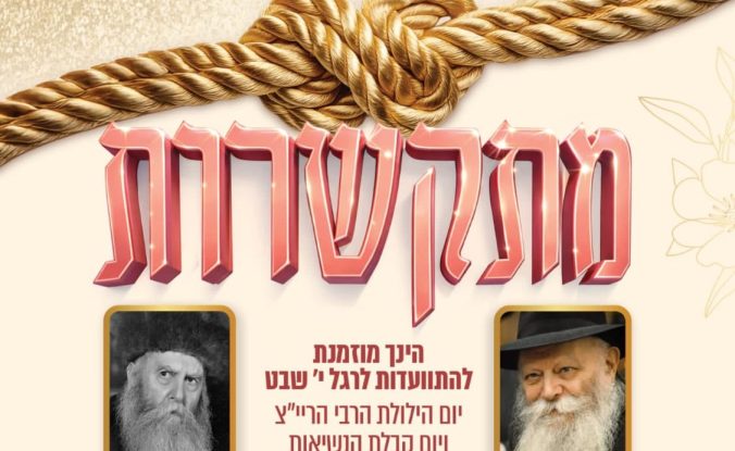הזמנה להתוועדויות י' שבט בצפת: "כמים הפנים לפנים, כן לב האדם לאדם". אנו מזמינות אותך להתחזק ולהתקשר יחד ביום המיוחד. מתי? יום שלישי, ט' שבט בשעה: 20:00. לכל הפרטים