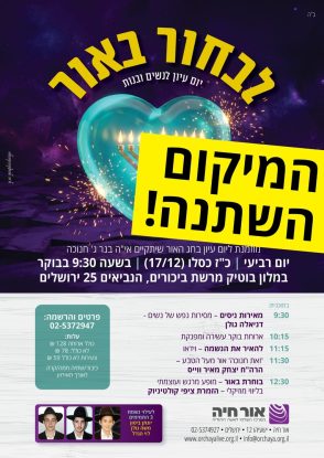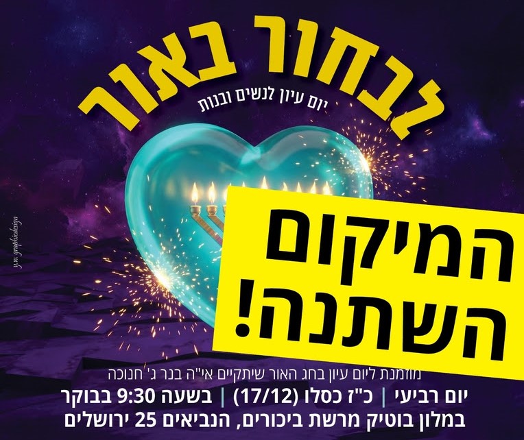 עדכון חשוב לקראת אירוע 'לבחור באור' מחר! החלפנו את המיקום, שימי לב לכתובת החדשה. כל הפרטים כאן