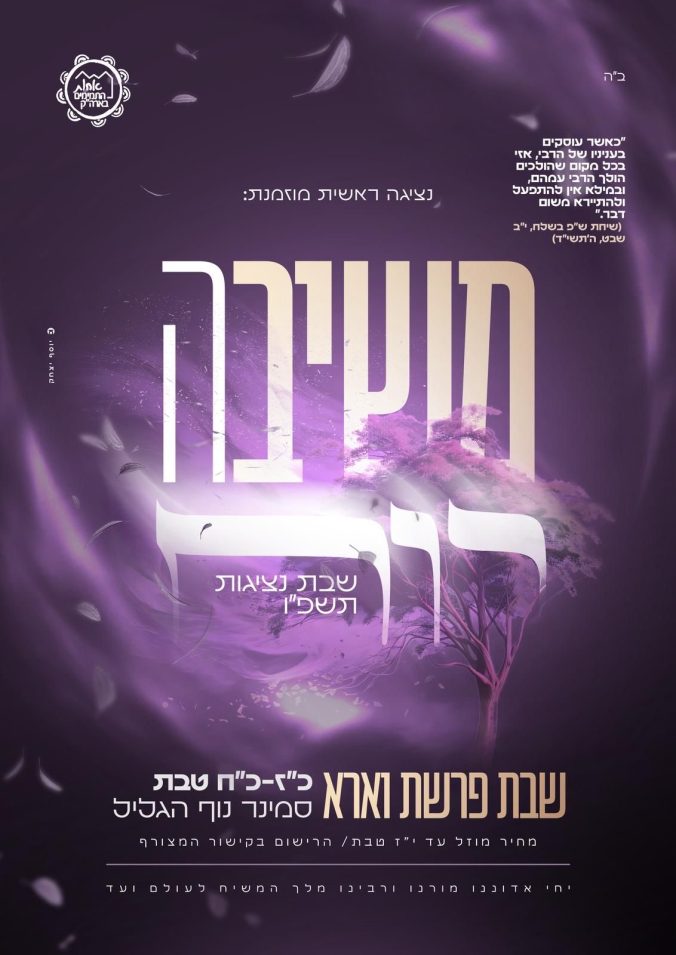 נציגה ראשית, זו שמשיבה את הרוח! מזמינות אותך לשבת שתתן לך כח! שבת פרשת וארא, בפנימייה המפוארת של סמינר בית חיה מושקא נוף הגליל. שבת איכותית ומושקעת במיוחד עבור הנציגות הראשיות שמתמסרות כל השנה ללא לאות! אורח השבת: הרב חיים אברביה. בשבת יחשפו לראשונה את מבצע י' שבט של השנה. יש למה לחכות! • למודעה המלאה