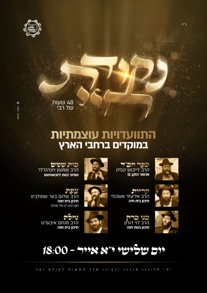 בימים אלו מתקיים מרתון גאולה ומשיח חדשני של אחות התמימים, שכלל שידור פתיחה מיוחד, לימוד בוקר חסידי בתיכונים ,שיעורים בזום עם מיטב הרבנים ועוד. גולת הכותרת היא התוועדויות עוצמתיות ומושקעות במוקדים מרכזיים ברחבי הארץ, שיתקיימו ביום שלישי י"א אייר. לא כדאי לפספס! לרשימת הרבנים המלאה ופרטי המוקדים