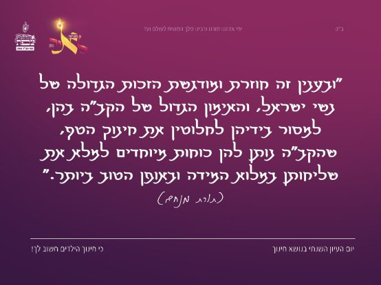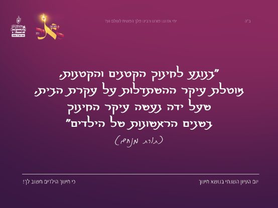נשות חב"ד צפת מזמינות אותך ליום העיון בחינוך, במיוחד בחג החנוכה שמטרתו להאיר ולחנך. מיטב המרצים, בשביל למלא את האמא והאישה היקרה בכח לחנך בדור הגאולה. לפירסומים ולמידע