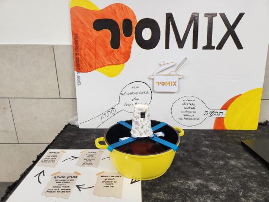"חשבנו על סיר שיערבב בעצמו את התבשיל באופן אוטומטי כמו מיקסר של עוגות", סיפרה מושקי, "אז לקחנו מנוע של משחק חשמלי שמסובב חוגה והתקנו אותו במכסה של הסיר, חיברנו שתי כפות וזה עובד, הסיר מערבב אוטומטית".